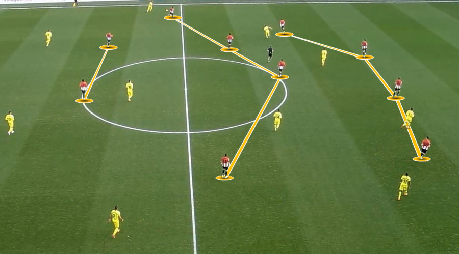 Disposición del Athletic durante su partido contra el Villarreal. Foto: laliga.es